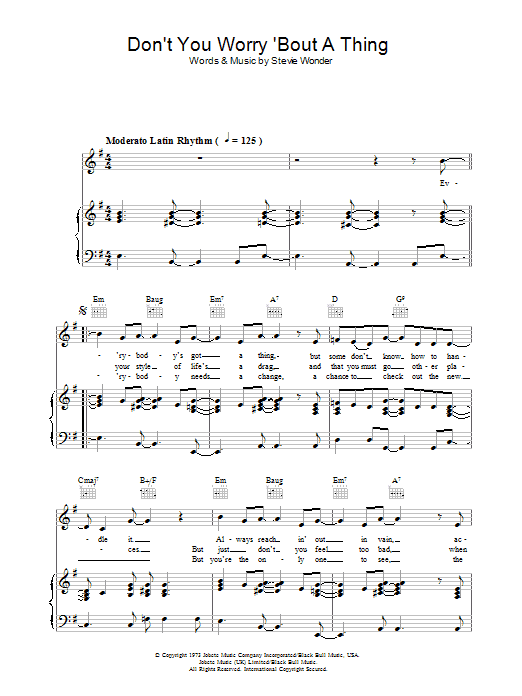 Download or print Stevie Wonder Don't You Worry 'Bout A Thing sheet music, chords and digital score arranged for Marimba Solo. This Jazz score includes 2 page(s).