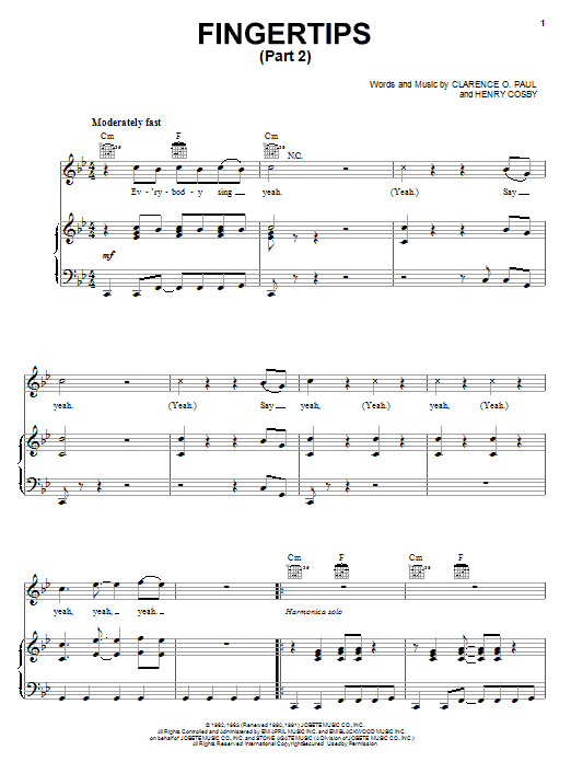 Download or print Stevie Wonder Fingertips (Part 2) sheet music, chords and digital score arranged for Piano, Vocal & Guitar Chords (Right-Hand Melody). This Pop score includes 4 page(s).