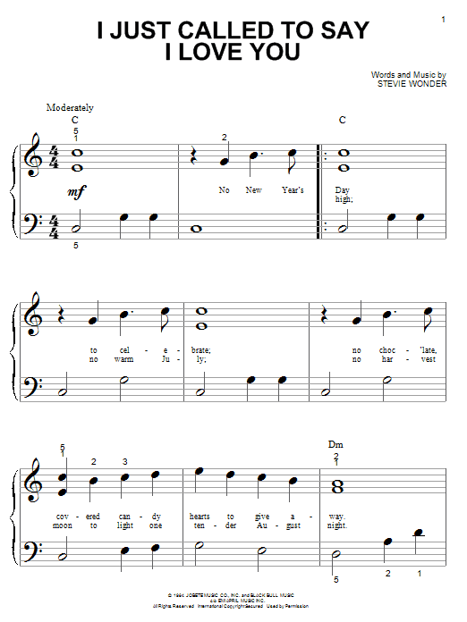 Quick facts I Just Called To Say I Love You about digital sheet music