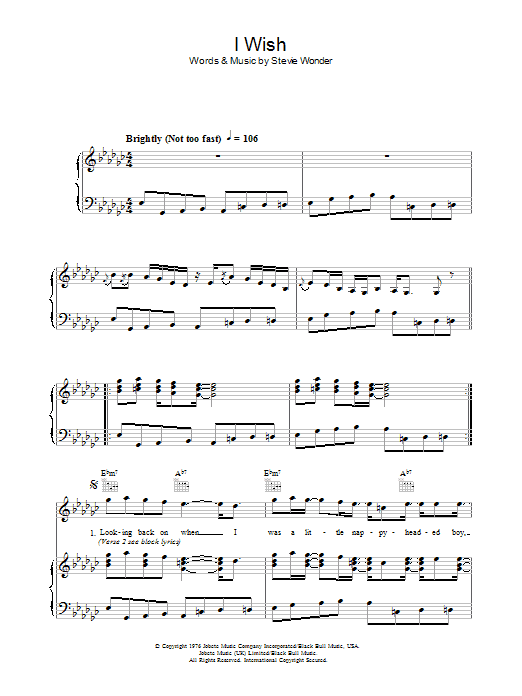 Download or print Stevie Wonder I Wish sheet music, chords and digital score arranged for Piano, Vocal & Guitar Chords (Right-Hand Melody). This Pop score includes 6 page(s).