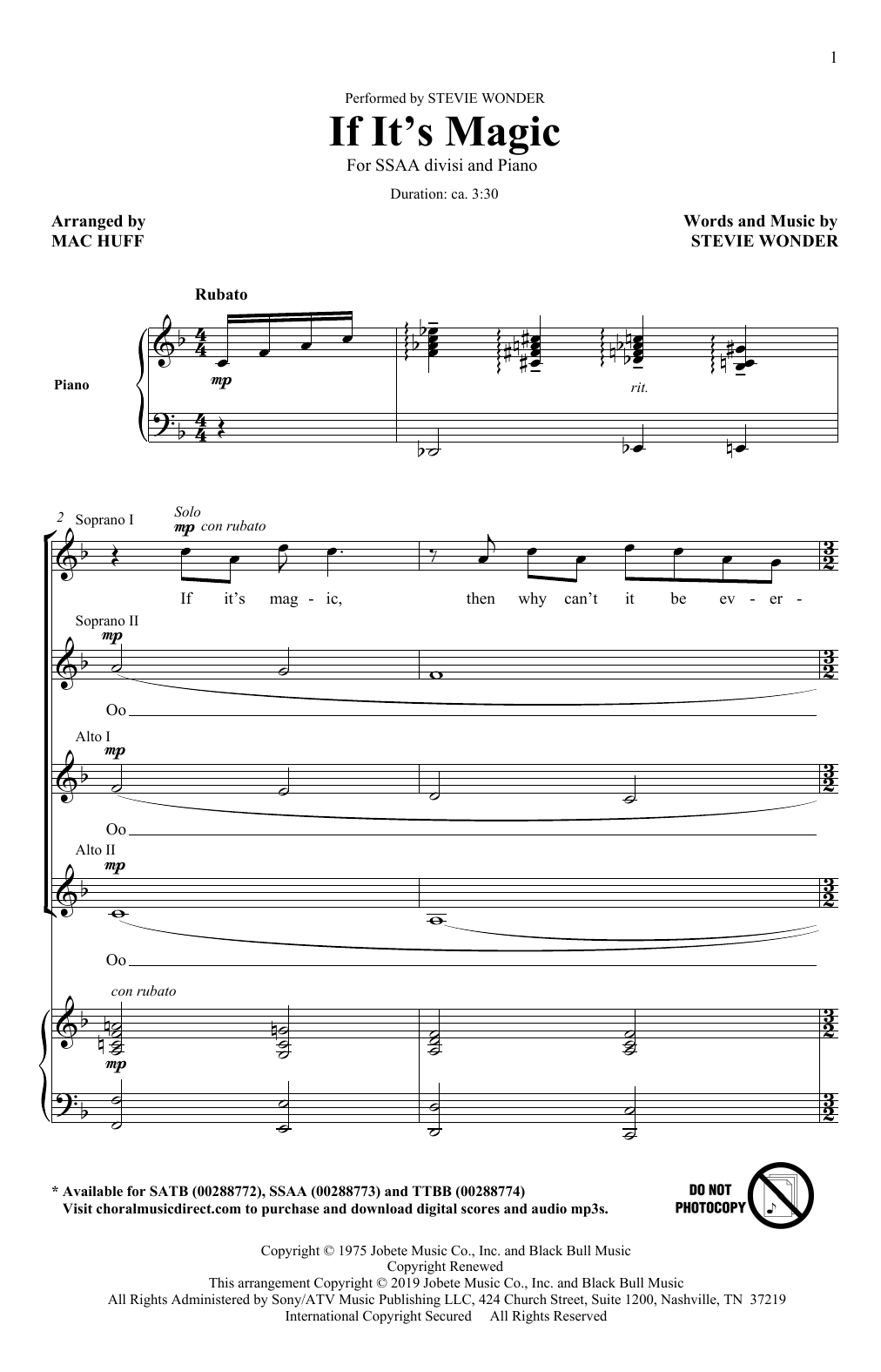 Download or print Stevie Wonder If It's Magic (arr. Mac Huff) sheet music, chords and digital score arranged for TTBB Choir. This Pop score includes 10 page(s).