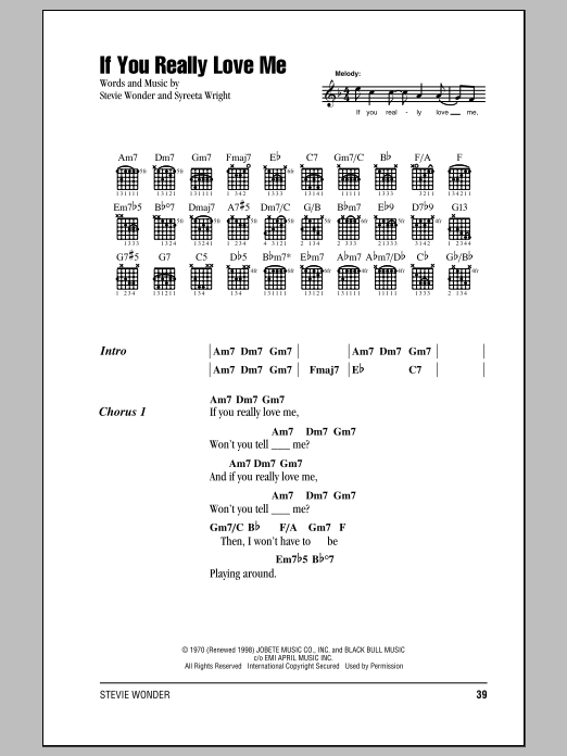 Download or print Stevie Wonder If You Really Love Me sheet music, chords and digital score arranged for Piano, Vocal & Guitar Chords (Right-Hand Melody). This Pop score includes 2 page(s).