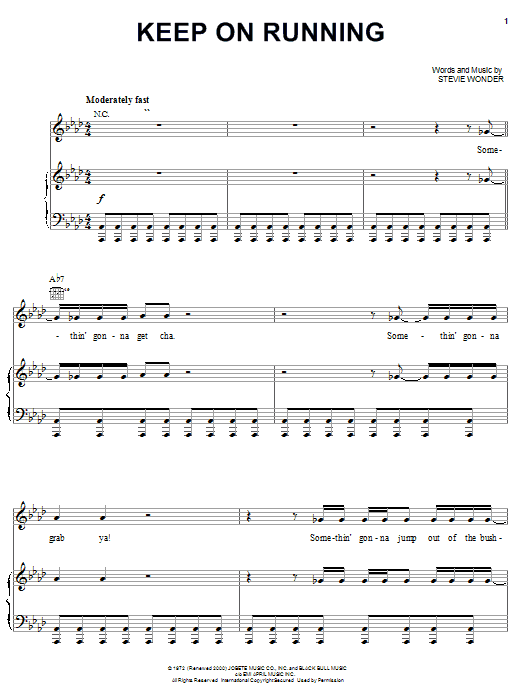 Download or print Stevie Wonder Keep On Running sheet music, chords and digital score arranged for Guitar Chords/Lyrics. This Pop score includes 2 page(s).