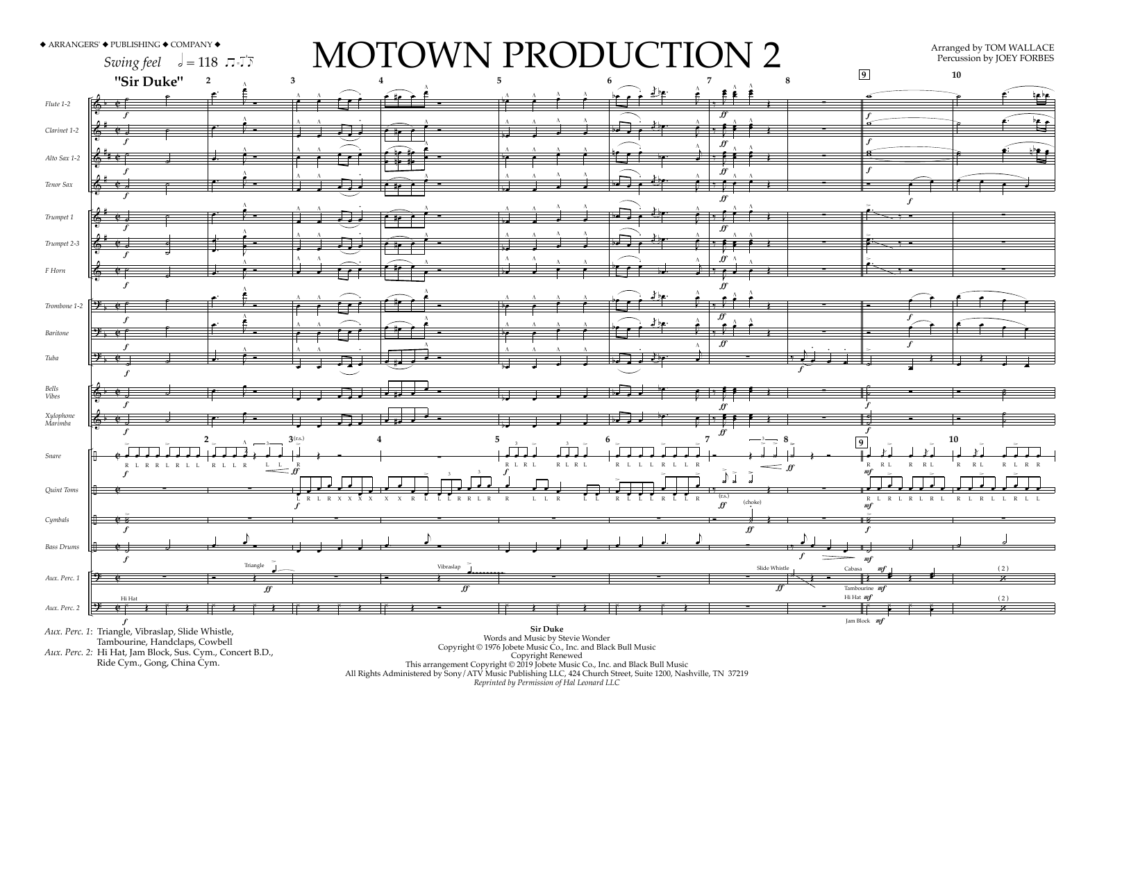 Download or print Stevie Wonder Motown Production 2 (arr. Tom Wallace) - Full Score sheet music, chords and digital score arranged for Marching Band. This Soul score includes 10 page(s).