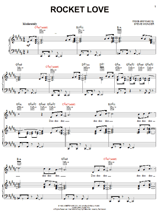 Download or print Stevie Wonder Rocket Love sheet music, chords and digital score arranged for Piano, Vocal & Guitar Chords (Right-Hand Melody). This Pop score includes 7 page(s).