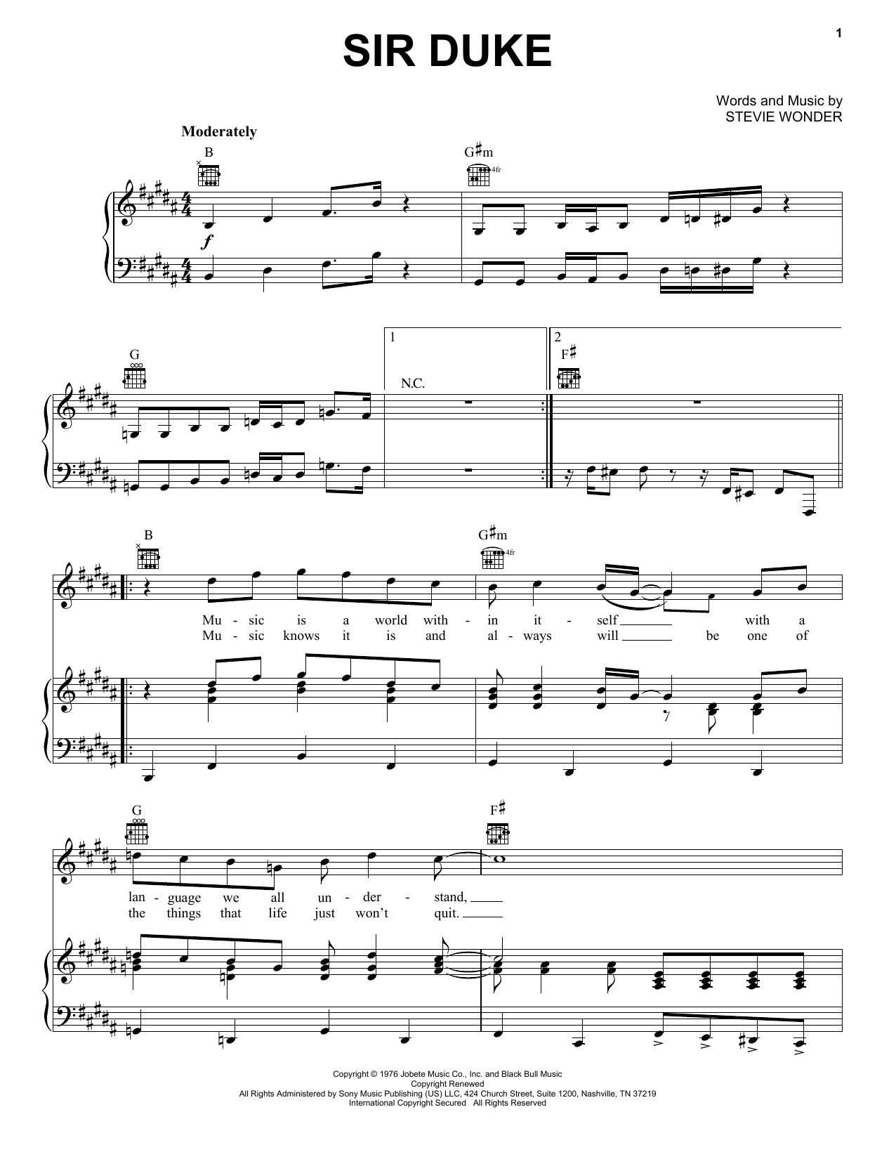 Download or print Stevie Wonder Sir Duke sheet music, chords and digital score arranged for Piano Solo. This Pop score includes 4 page(s).