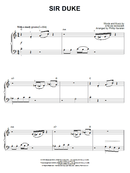 Download or print Stevie Wonder Sir Duke (arr. Phillip Keveren) sheet music, chords and digital score arranged for Piano Solo. This Pop score includes 4 page(s).