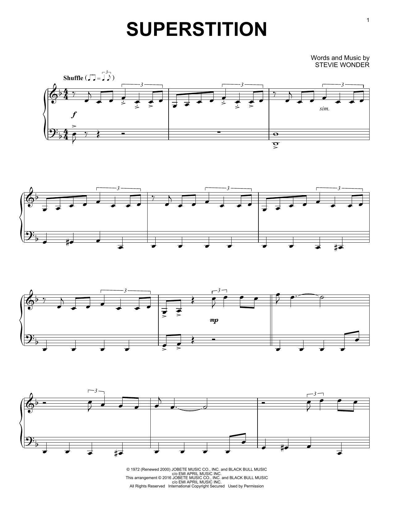 Download or print Stevie Wonder Superstition [Jazz version] sheet music, chords and digital score arranged for Piano Solo. This Pop score includes 5 page(s).