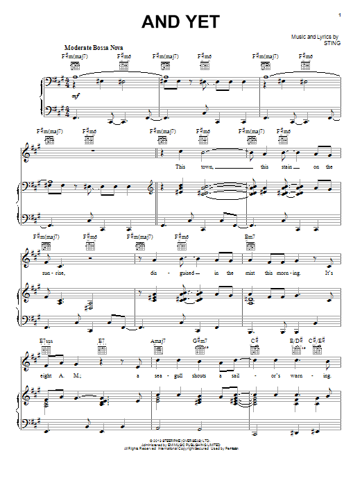 Download or print Sting And Yet sheet music, chords and digital score arranged for Piano, Vocal & Guitar Chords (Right-Hand Melody). This Pop score includes 10 page(s).