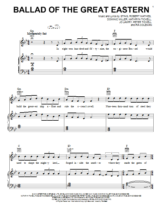 Download or print Sting Ballad Of The Great Eastern sheet music, chords and digital score arranged for Piano, Vocal & Guitar Chords (Right-Hand Melody). This Pop score includes 9 page(s).