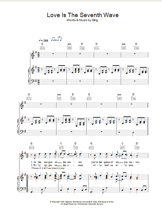 Download or print Sting Love Is The Seventh Wave sheet music, chords and digital score arranged for Guitar Chords/Lyrics. This Rock score includes 3 page(s).