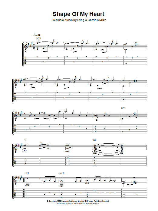 Download or print Sting Shape Of My Heart sheet music, chords and digital score arranged for Guitar Chords/Lyrics. This Rock score includes 3 page(s).