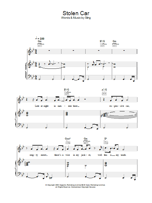 Download or print Sting Stolen Car sheet music, chords and digital score arranged for Lead Sheet / Fake Book. This Pop score includes 3 page(s).