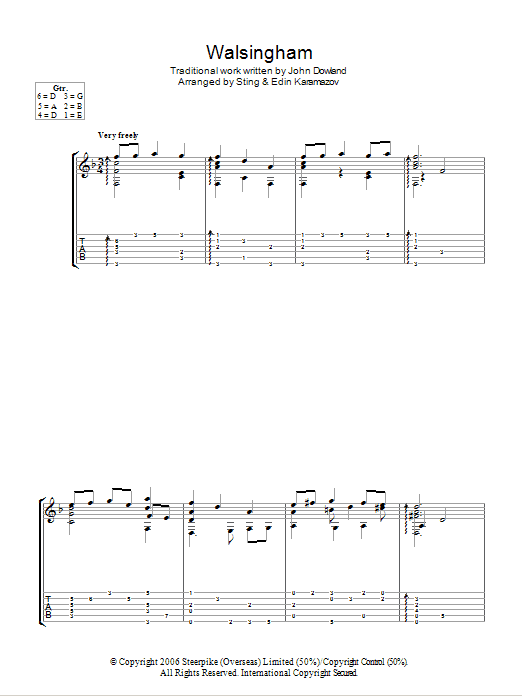 Quick facts Walsingham (as performed by Sting and Edin Karamazov) about digital sheet music