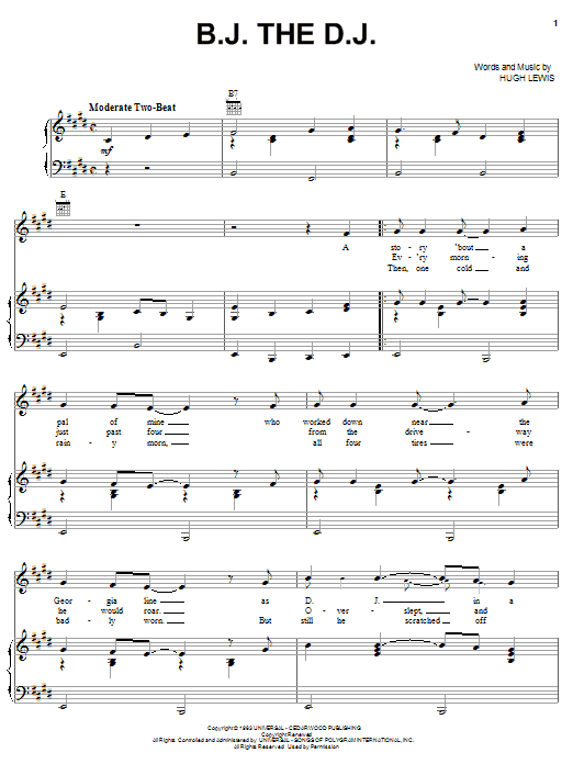 Download or print Stonewall Jackson B.J. The D.J. sheet music, chords and digital score arranged for Piano, Vocal & Guitar Chords (Right-Hand Melody). This Country score includes 6 page(s).