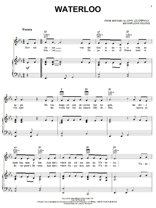 Download or print Stonewall Jackson Waterloo sheet music, chords and digital score arranged for Easy Lead Sheet / Fake Book. This Country score includes 1 page(s).