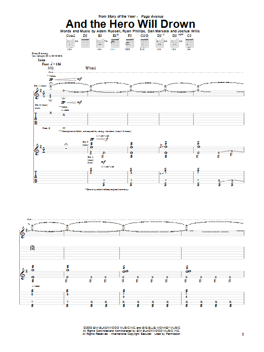 Download or print Story Of The Year And The Hero Will Drown sheet music, chords and digital score arranged for Guitar Tab. This Rock score includes 16 page(s).