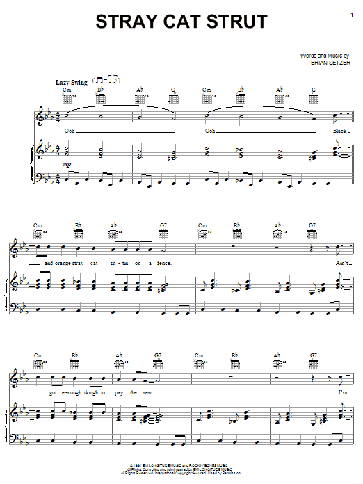 Download or print Stray Cats Stray Cat Strut sheet music, chords and digital score arranged for Piano, Vocal & Guitar Chords (Right-Hand Melody). This Pop score includes 4 page(s).