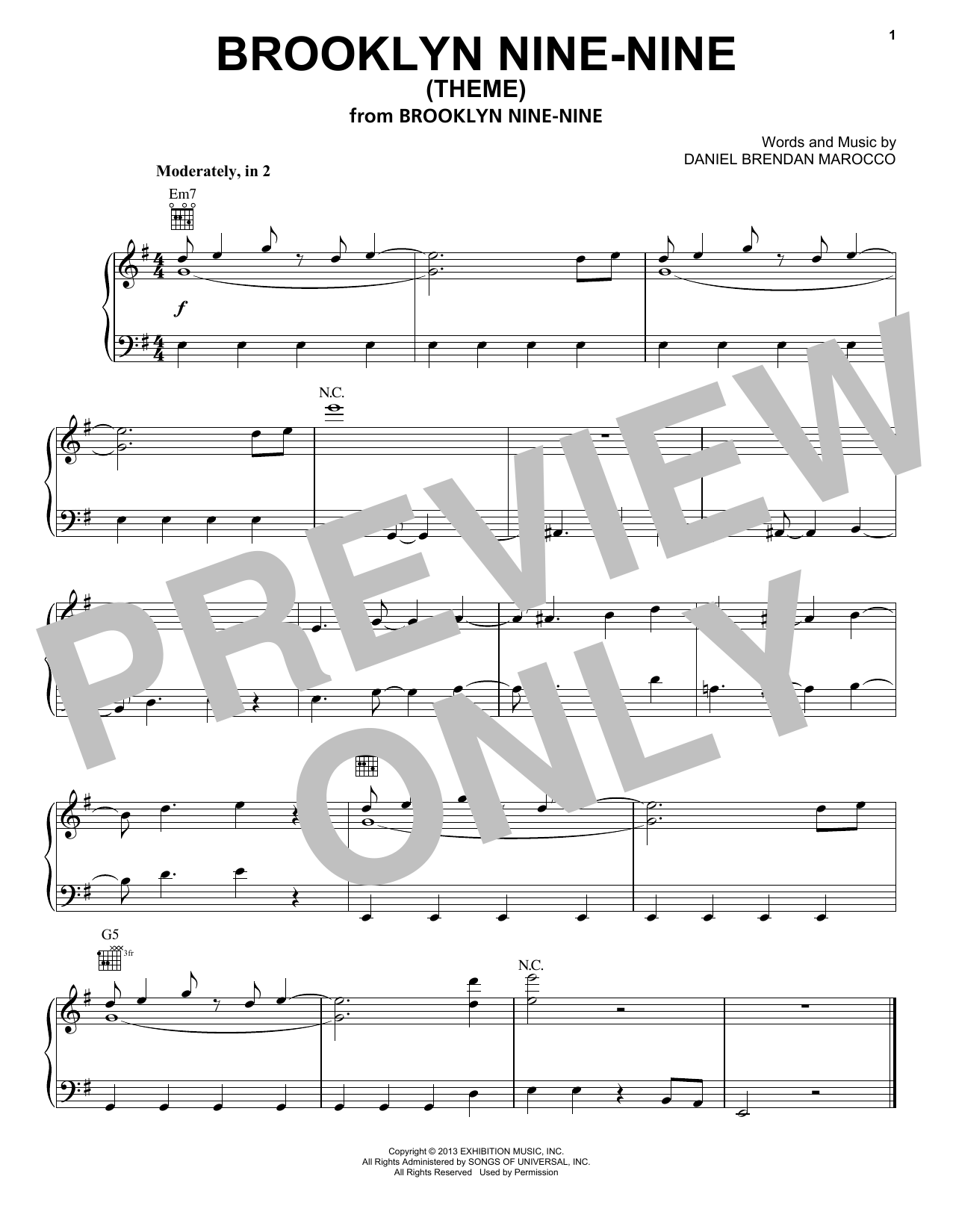 Download or print Stuart Petty Brooklyn Nine-Nine (Theme) sheet music, chords and digital score arranged for Piano Solo. This Film/TV score includes 1 page(s).