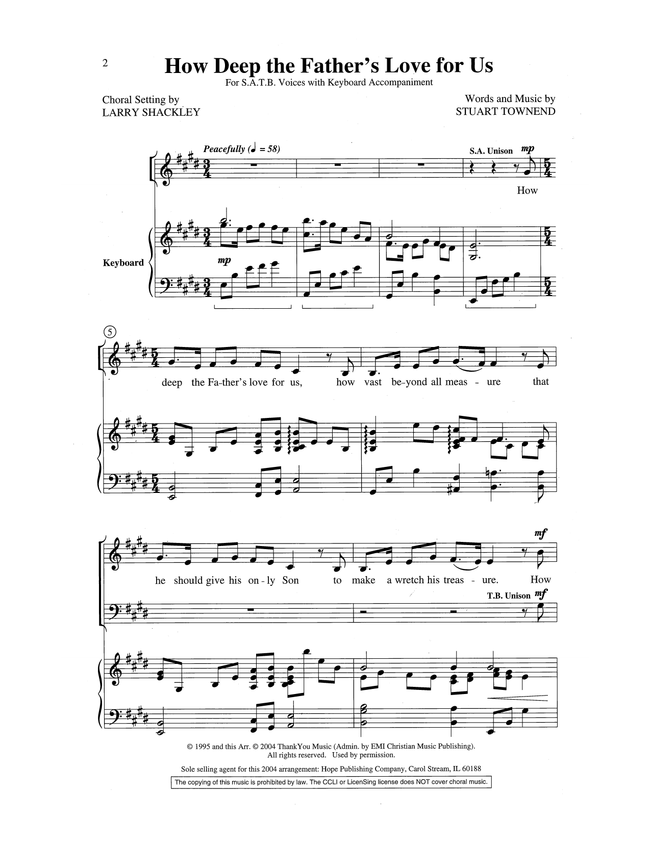 Download or print Stuart Townend How Deep the Father's Love for Us (arr. Larry Shackley) sheet music, chords and digital score arranged for SATB Choir. This Easter score includes 7 page(s).