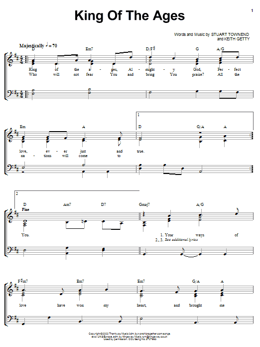 Download or print Stuart Townend King Of The Ages sheet music, chords and digital score arranged for Piano, Vocal & Guitar Chords (Right-Hand Melody). This Christian score includes 2 page(s).