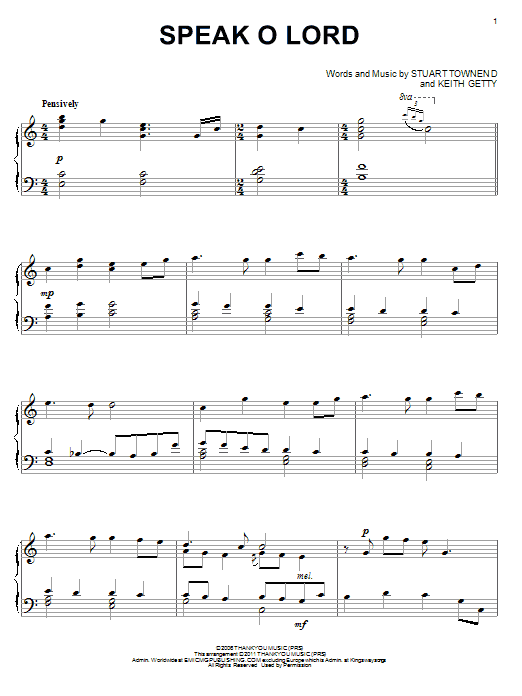 Download or print Keith & Kristyn Getty Speak O Lord sheet music, chords and digital score arranged for Piano, Vocal & Guitar Chords (Right-Hand Melody). This Christian score includes 4 page(s).