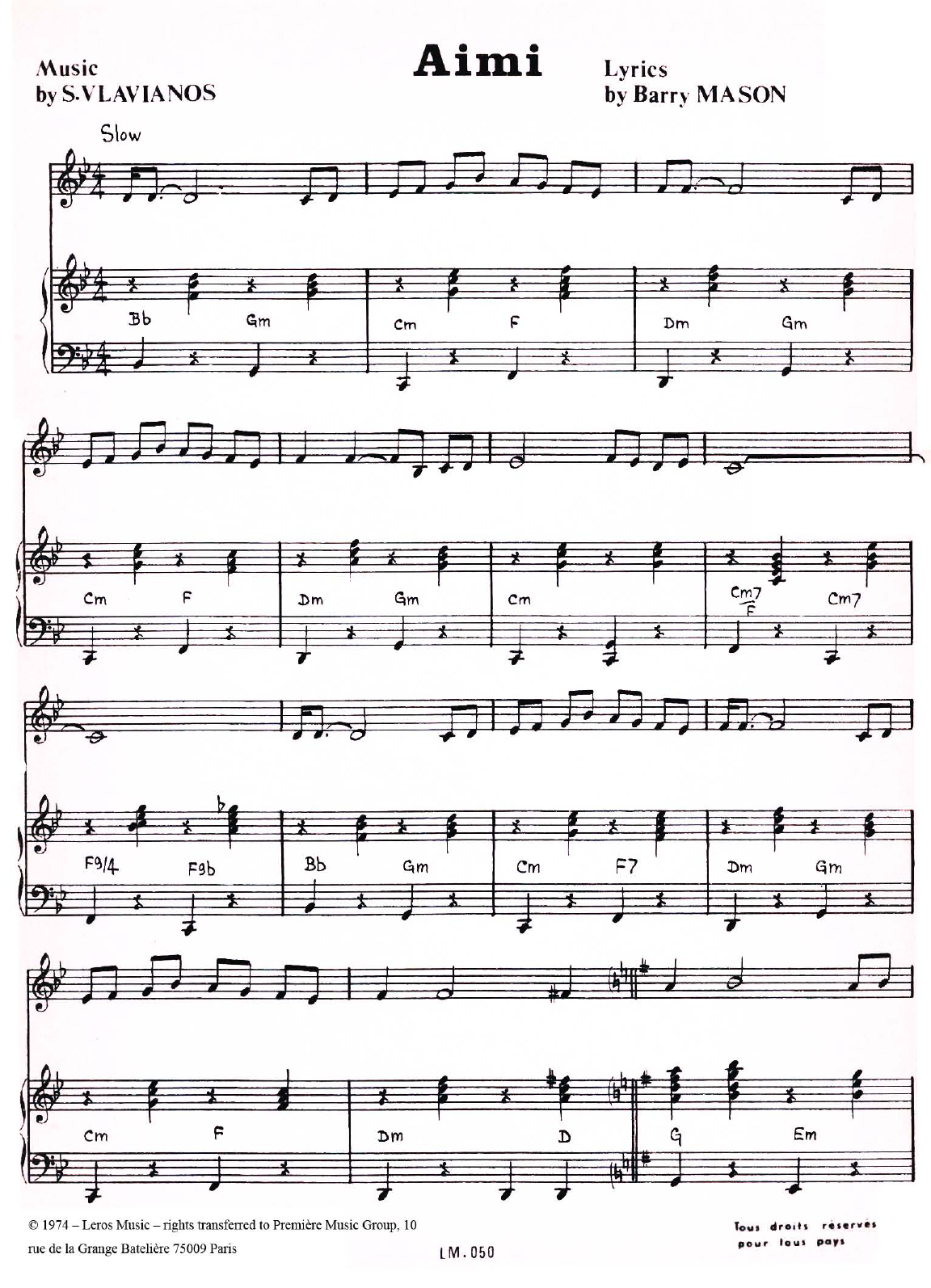 Download or print Stylianos Vlavianos Aimi sheet music, chords and digital score arranged for Piano & Vocal. This Standards score includes 2 page(s).