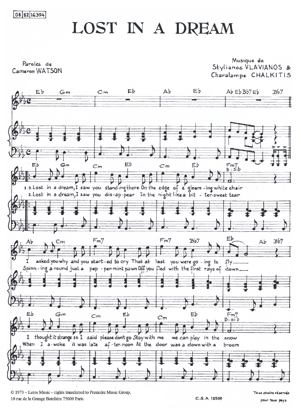 Download or print Stylianos Vlavianos Lost In A Dream sheet music, chords and digital score arranged for Piano, Vocal & Guitar Chords. This Standards score includes 2 page(s).