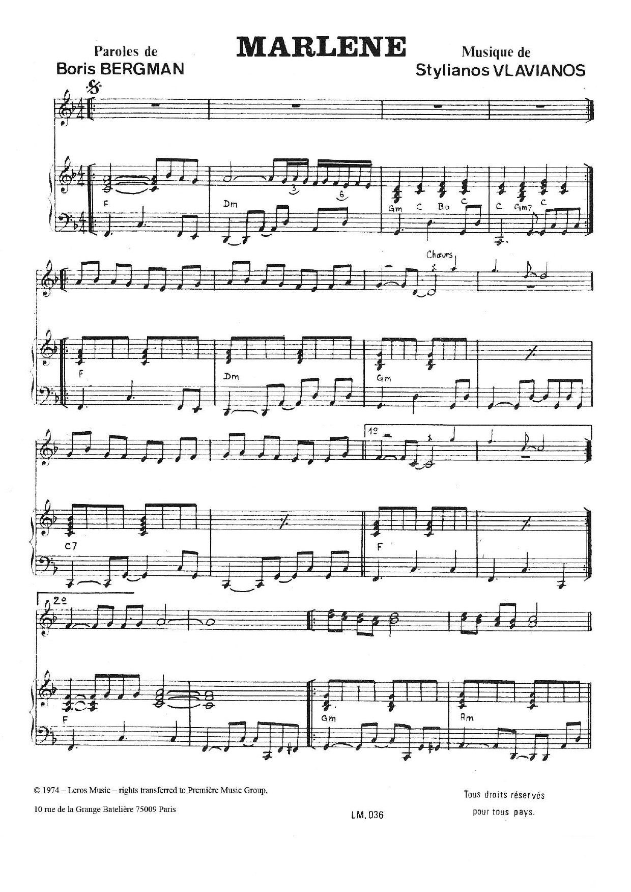 Download or print Stylianos Vlavianos Marlene sheet music, chords and digital score arranged for Piano, Vocal & Guitar Chords. This Standards score includes 2 page(s).