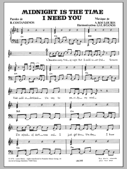 Download or print Stylianos Vlavianos Midnight Is The Time I Need You sheet music, chords and digital score arranged for Piano & Vocal. This Pop score includes 3 page(s).