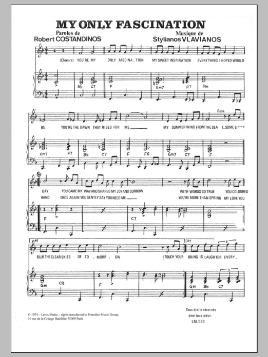Download or print Stylianos Vlavianos My Only Fascination sheet music, chords and digital score arranged for Piano & Vocal. This Pop score includes 2 page(s).