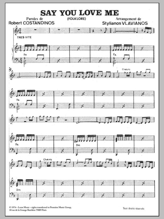 Download or print Stylianos Vlavianos Say You Love Me sheet music, chords and digital score arranged for Piano & Vocal. This Pop score includes 3 page(s).