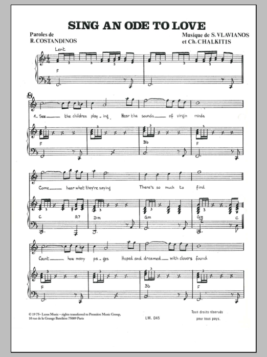 Download or print Stylianos Vlavianos Sing An Ode To Love sheet music, chords and digital score arranged for Piano Solo. This Pop score includes 2 page(s).