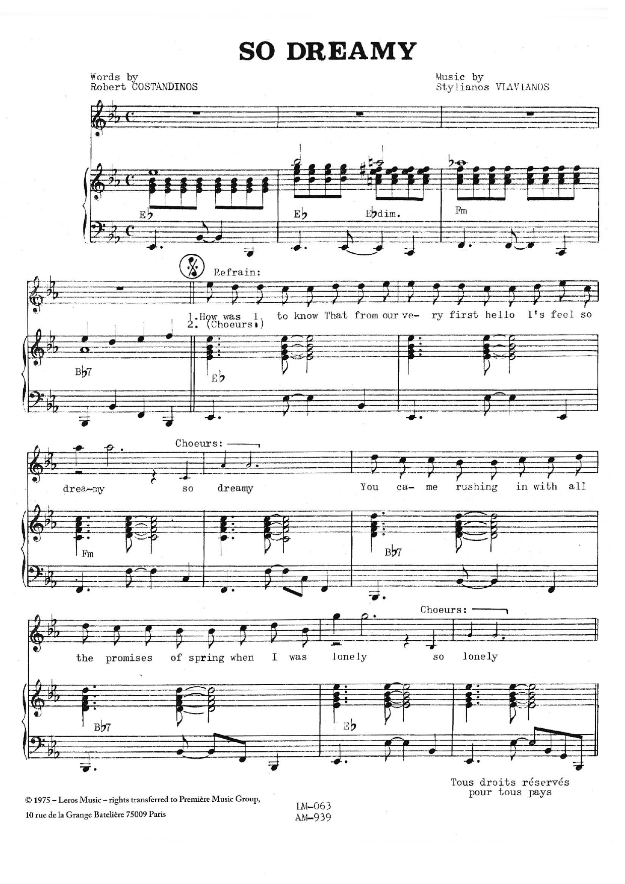 Download or print Stylianos Vlavianos So Dreamy sheet music, chords and digital score arranged for Piano & Vocal. This Standards score includes 3 page(s).