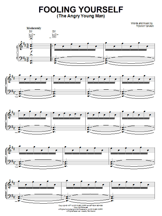 Download or print Styx Fooling Yourself (The Angry Young Man) sheet music, chords and digital score arranged for Keyboard Transcription. This Pop score includes 12 page(s).