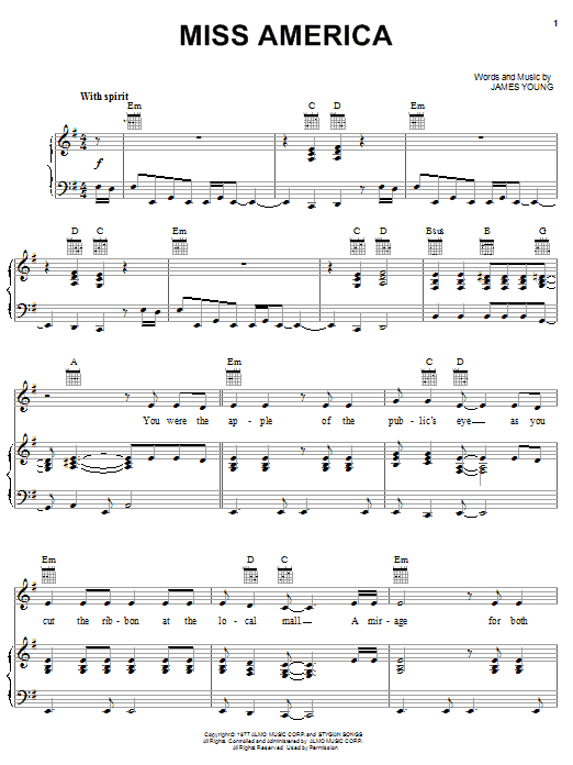 Download or print Styx Miss America sheet music, chords and digital score arranged for Piano, Vocal & Guitar Chords (Right-Hand Melody). This Rock score includes 6 page(s).