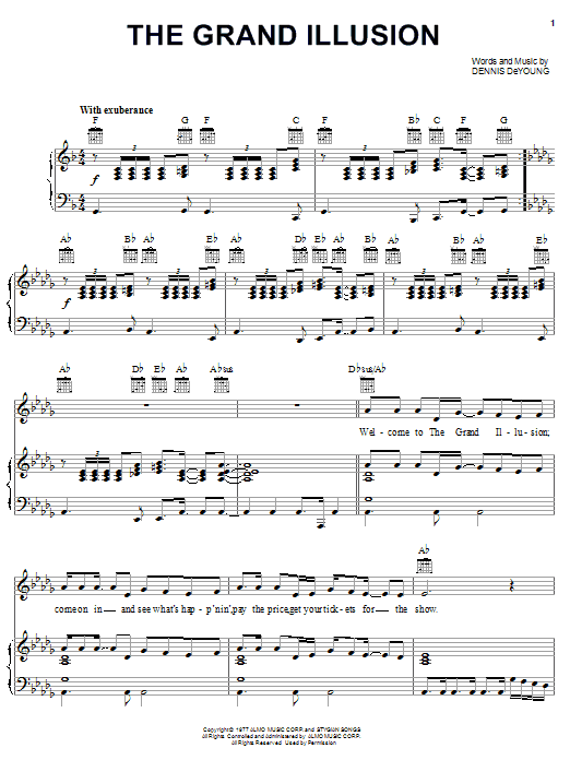 Download or print Styx The Grand Illusion sheet music, chords and digital score arranged for Piano, Vocal & Guitar Chords (Right-Hand Melody). This Pop score includes 6 page(s).