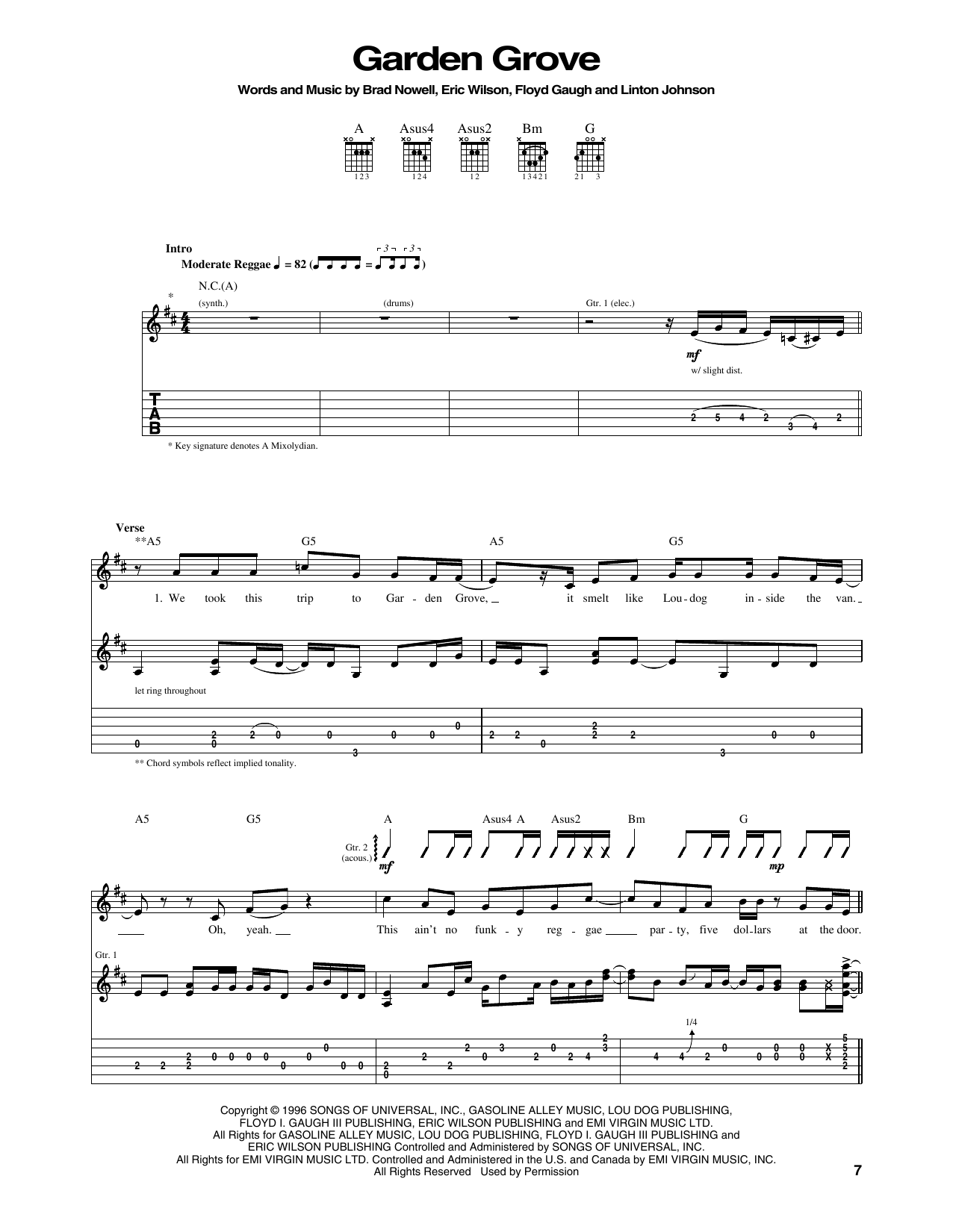 Download or print Sublime Garden Grove sheet music, chords and digital score arranged for Bass Guitar Tab. This Rock score includes 6 page(s).