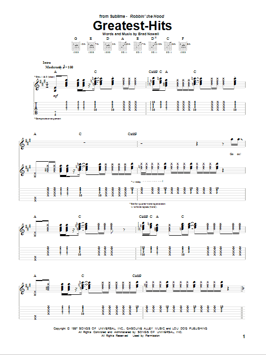 Download or print Sublime Greatest-Hits sheet music, chords and digital score arranged for Guitar Tab. This Pop score includes 11 page(s).