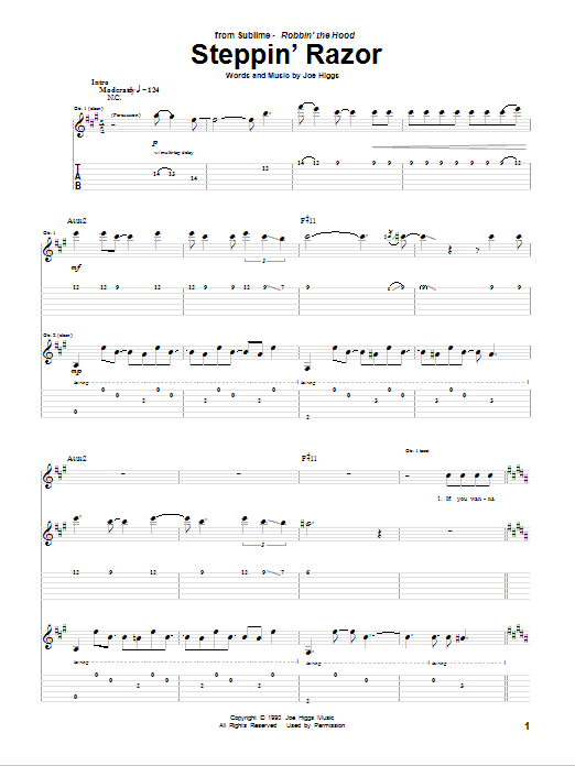 Download or print Sublime Steppin' Razor sheet music, chords and digital score arranged for Guitar Tab. This Pop score includes 6 page(s).