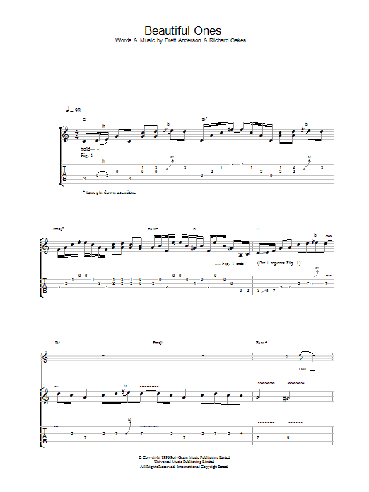 Download or print Suede Beautiful Ones sheet music, chords and digital score arranged for Guitar Tab. This Pop score includes 6 page(s).
