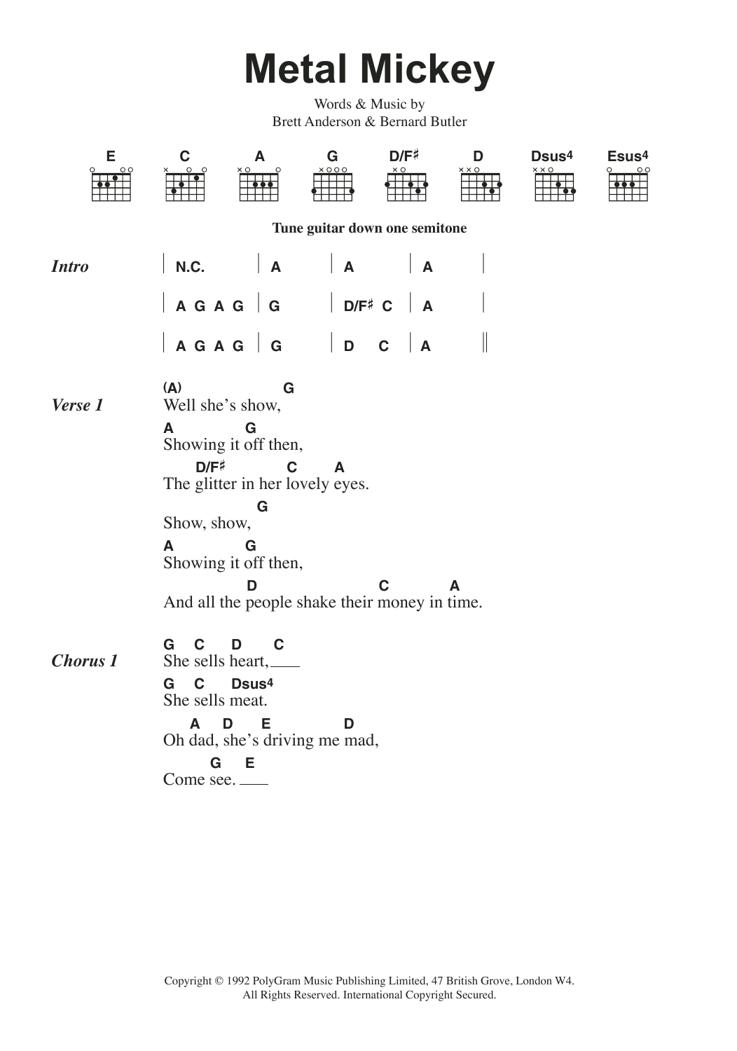 Download or print Suede Metal Mickey sheet music, chords and digital score arranged for Guitar Chords/Lyrics. This Rock score includes 3 page(s).