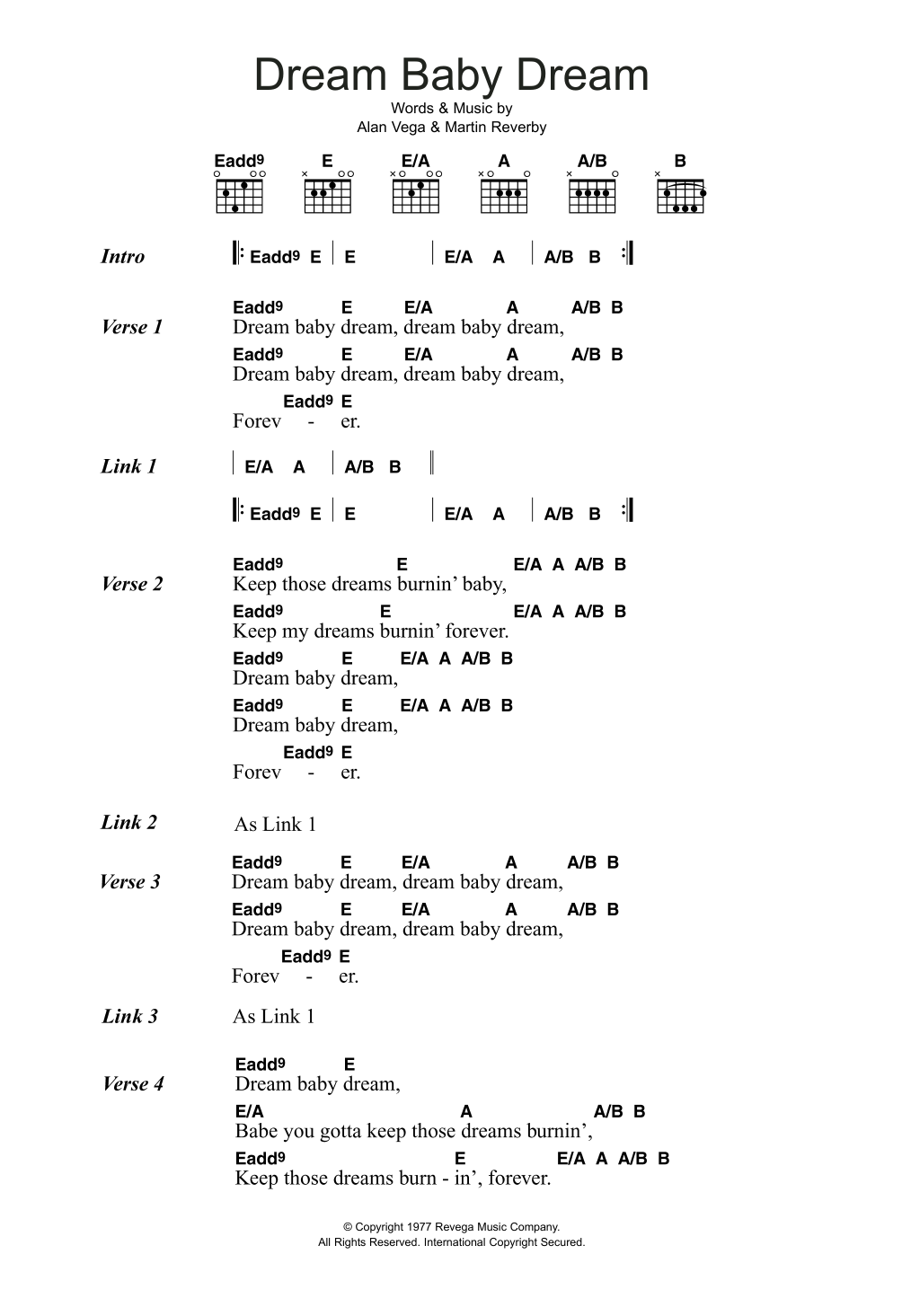 Download or print Suicide Dream Baby Dream sheet music, chords and digital score arranged for Guitar Chords/Lyrics. This Pop score includes 2 page(s).
