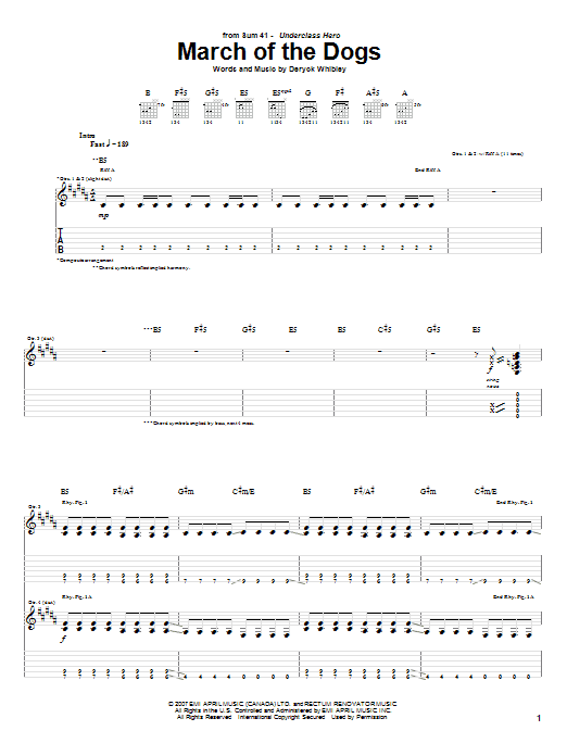 Download or print Sum 41 March Of The Dogs sheet music, chords and digital score arranged for Guitar Tab. This Pop score includes 11 page(s).