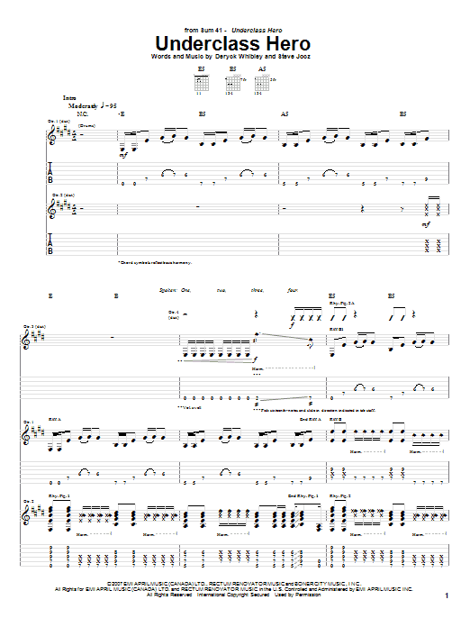 Download or print Sum 41 Underclass Hero sheet music, chords and digital score arranged for Guitar Tab. This Pop score includes 7 page(s).