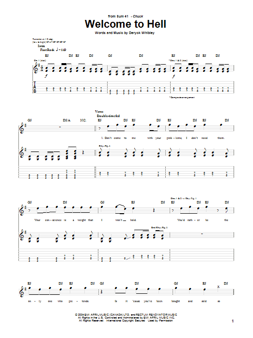 Download or print Sum 41 Welcome To Hell sheet music, chords and digital score arranged for Guitar Tab. This Metal score includes 4 page(s).
