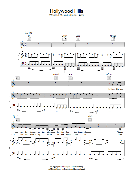 Download or print Sunrise Avenue Hollywood Hills sheet music, chords and digital score arranged for Piano & Vocal. This Pop score includes 6 page(s).