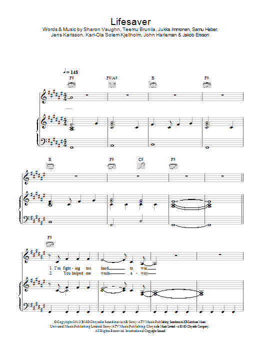 Download or print Sunrise Avenue Lifesaver sheet music, chords and digital score arranged for Piano, Vocal & Guitar Chords. This Pop score includes 5 page(s).