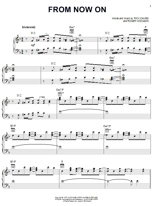 Download or print Supertramp From Now On sheet music, chords and digital score arranged for Piano, Vocal & Guitar Chords (Right-Hand Melody). This Pop score includes 8 page(s).