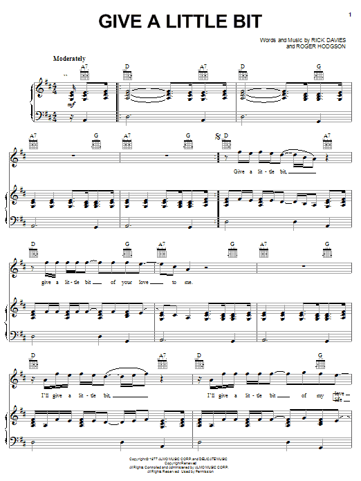 Download or print Supertramp Give A Little Bit sheet music, chords and digital score arranged for Mandolin Chords/Lyrics. This Rock score includes 2 page(s).